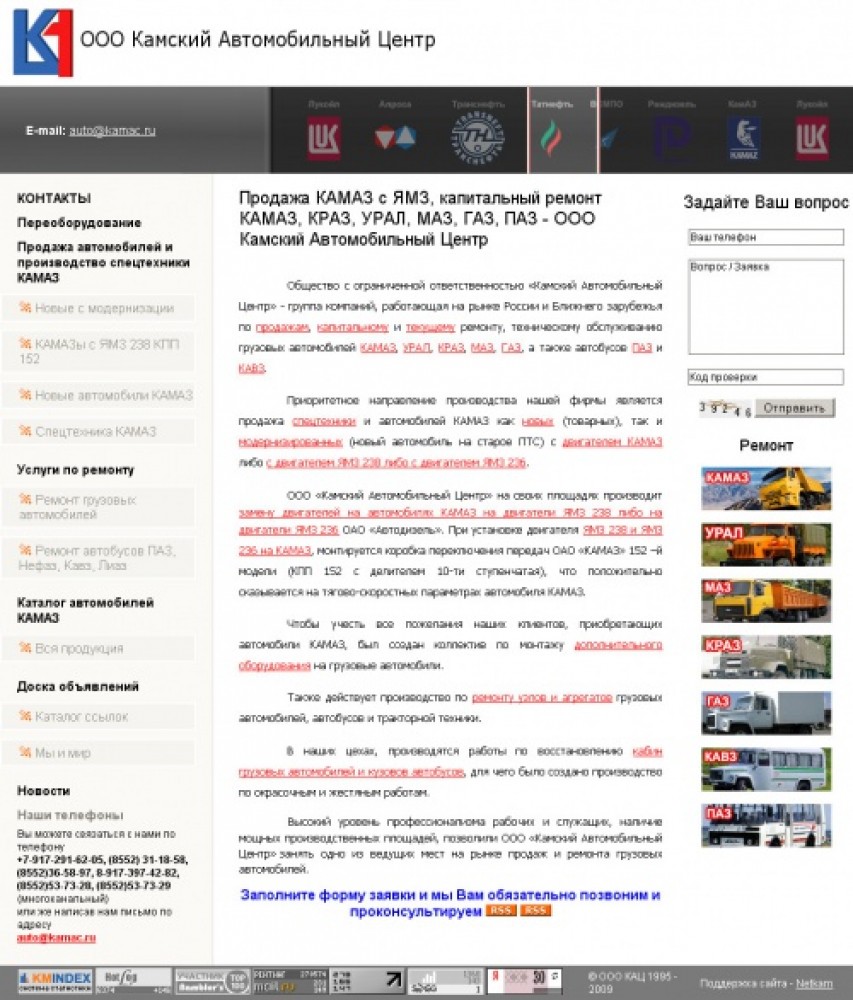 Общество с ограниченной ответственностью «Камский Автомобильный Центр» - группа компаний, работающая на рынке России и Ближнего зарубежья по продажам, капитальному и текущему ремонту, техническому обслуживанию грузовых автомобилей КАМАЗ, УРАЛ, КРАЗ, МАЗ, ГАЗ, а также автобусов ПАЗ и КАВЗ.
